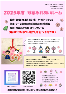 3月子育て支援「ふれあいルーム」のお知らせ